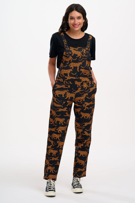 Beau Dungarees - Black/Tan Leopards