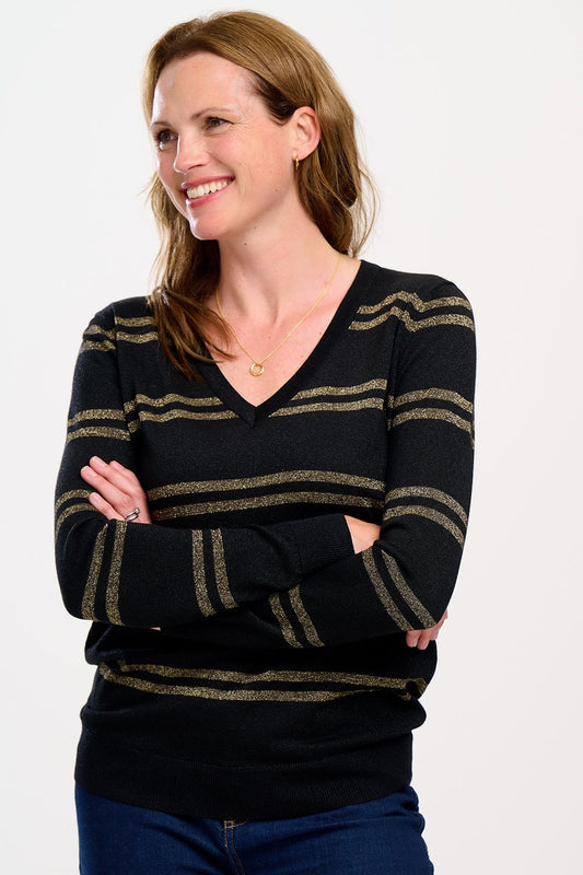 Marcella V Neck Jumper - Black/Gold